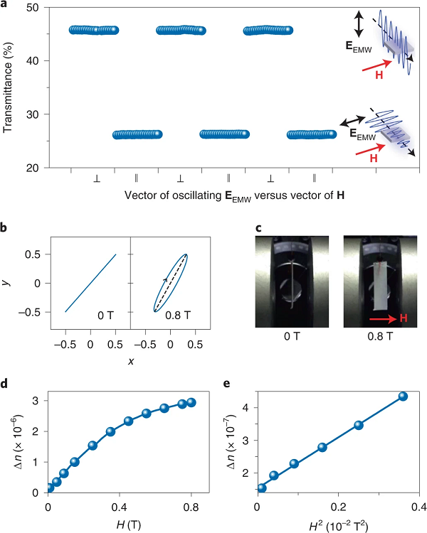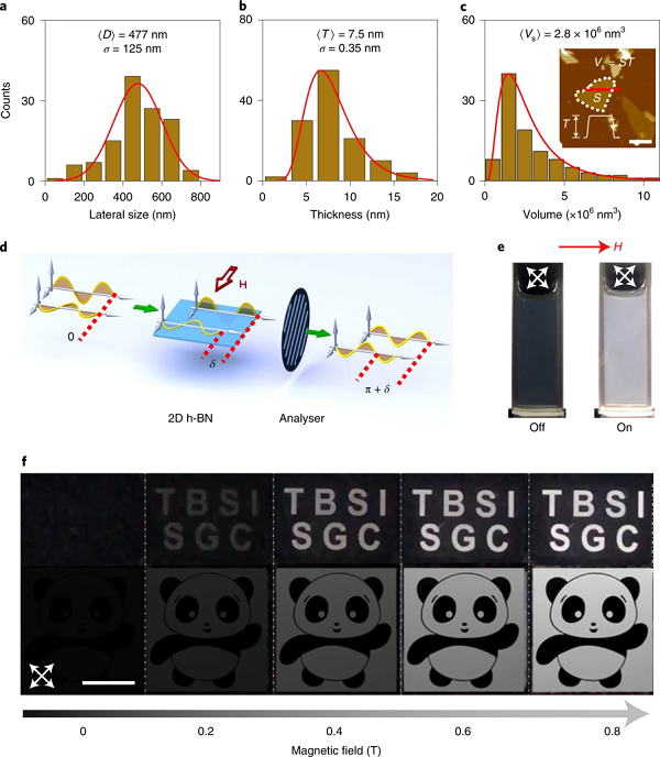 图二、磁场诱导二维h-BN无机LC层的取向和磁双折射