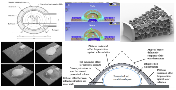 - b. 多层防御基地的增材制造技术(图5):栖息地的设计应考虑三个基本方面,分别提供热保护、机械保护和辐射保护。