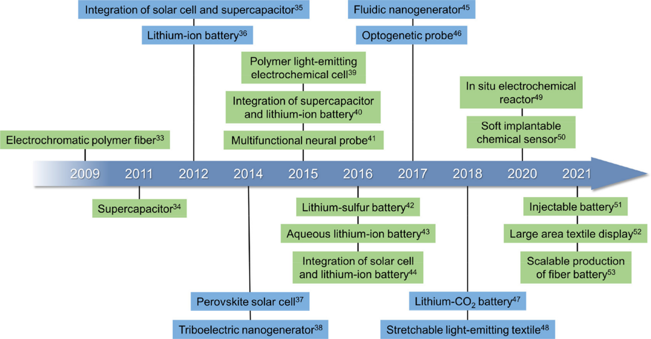 图1. 近十多年纤维器件的主要发展时间表和分类。