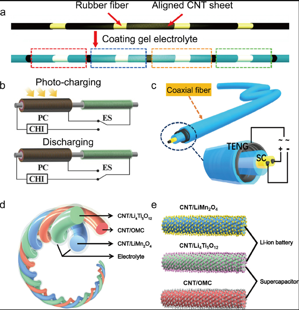 5)规模化制备:纤维器件的规模化制备是其迈向广泛应用的关键一步。如何量产高性能纤维器件,是目前学术界和工业界均面临的一个问题。