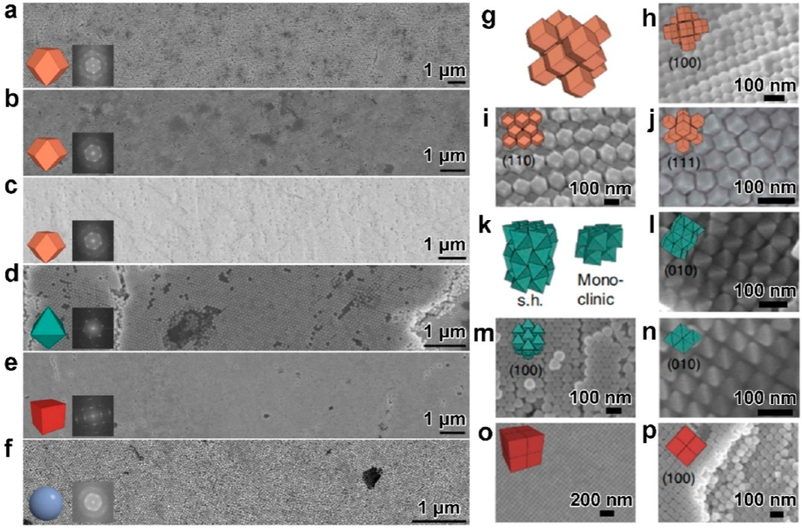 - Gong, J.; Newman, R. S.; Engel, M.; Zhao, M.; Bian, F.; Glotzer, S. C.; Tang, Z. Shape-Dependent Ordering of Gold Nanocrystals into Large-Scale Superlattices. Commun. 2017, 8, 14038.