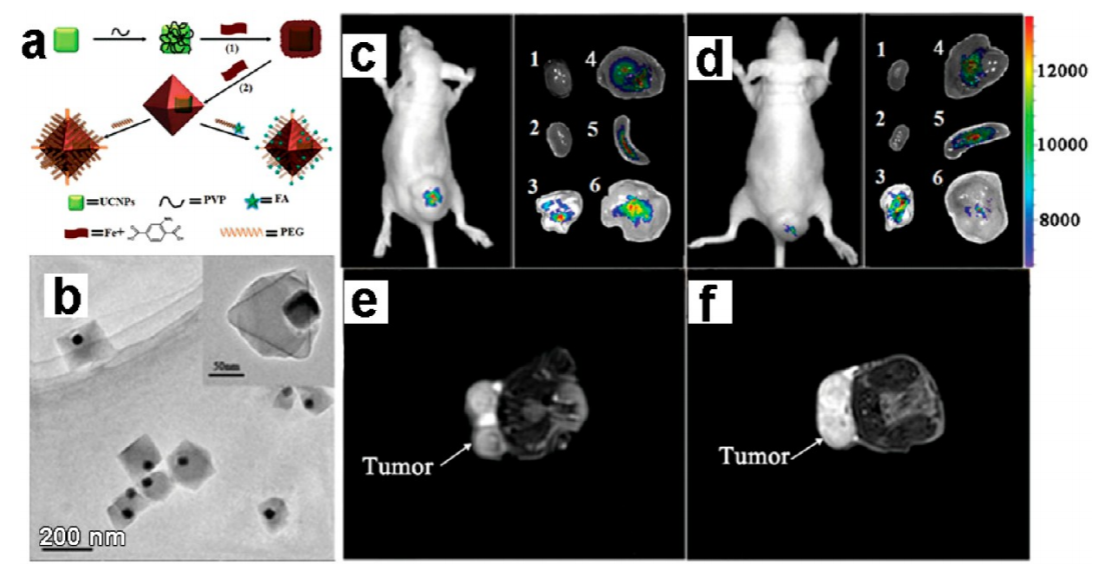 - Li, Y.; Tang, J.; He, L.; Liu, Y.; Liu, Y.; Chen, C.; Tang, Z. Core-Shell Upconversion Nanoparticle@Metal-Organic Framework Nanoprobes for Luminescent/Magnetic Dual-Mode Targeted Imaging. Mater. 2015, 27, 4075-4080.