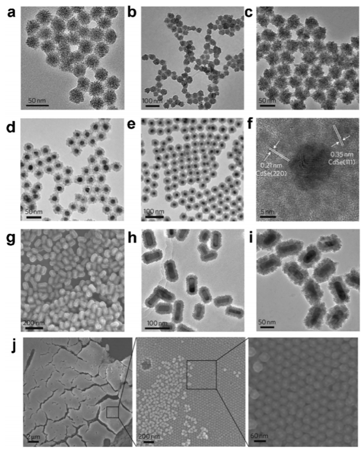 图二、由金纳米粒子和非均匀无机纳米粒子组装的超结构透射电子显微镜(TEM)和SEM图像©2022 ACS