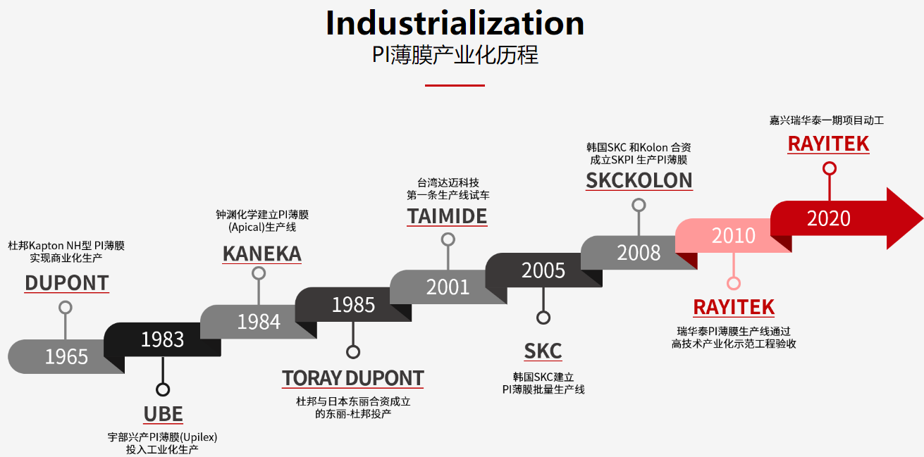 图1 PI薄膜产业化发展历程(图源:瑞华泰企业官网)