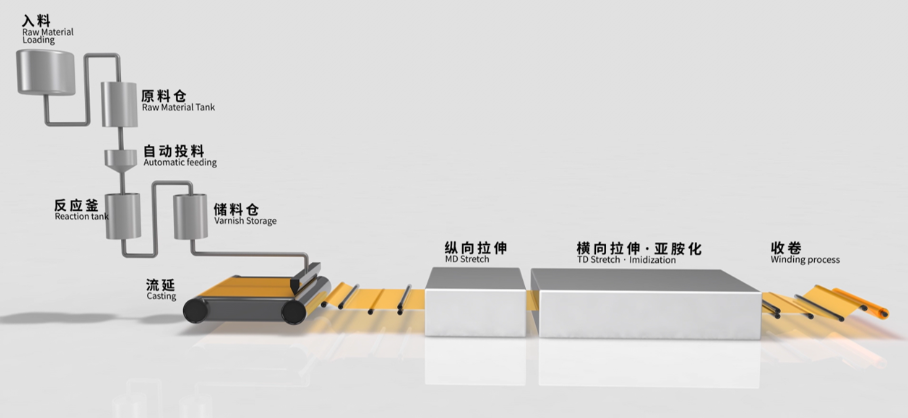 图4 聚酰亚胺薄膜典型制造工艺流程