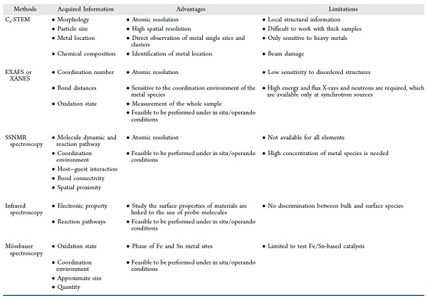 表2.表征沸石中金属物种的各类方法比较。© 2022 American Chemical Society