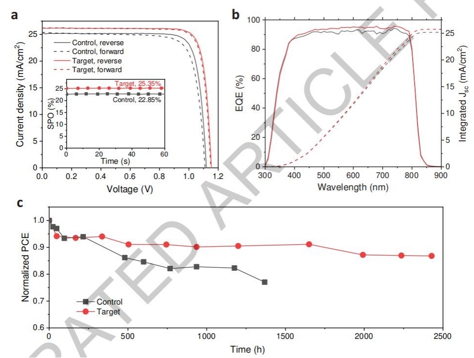 相关研究文章以“Surface reaction for efficient and stable inverted perovskite solar cells”为题发表在Nature上。