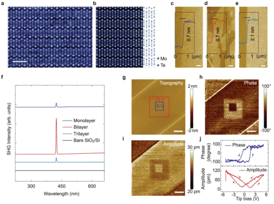 - 采用压电力显微镜(PFM)表征首次在实验上证实了双层MoTe2的室温铁电特性。