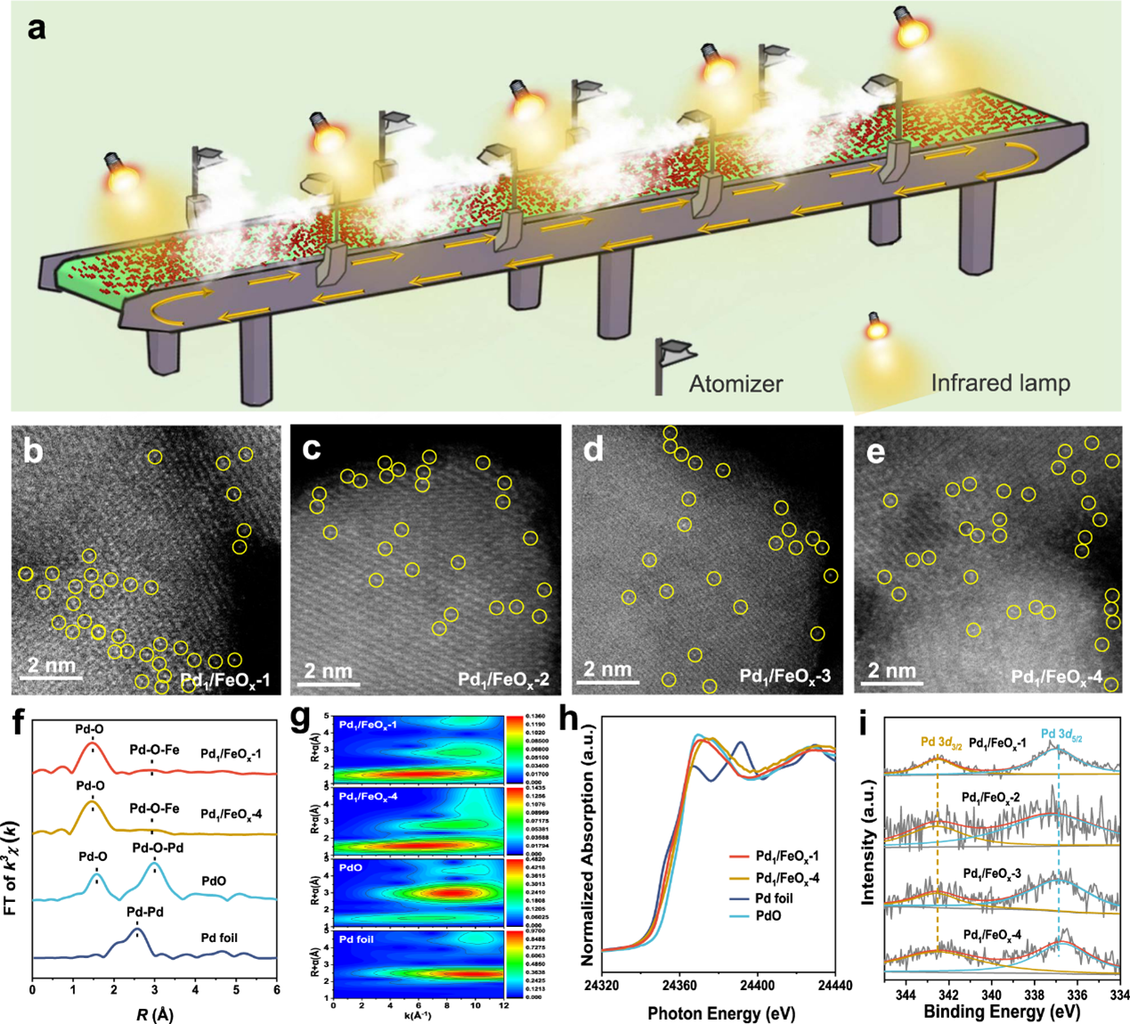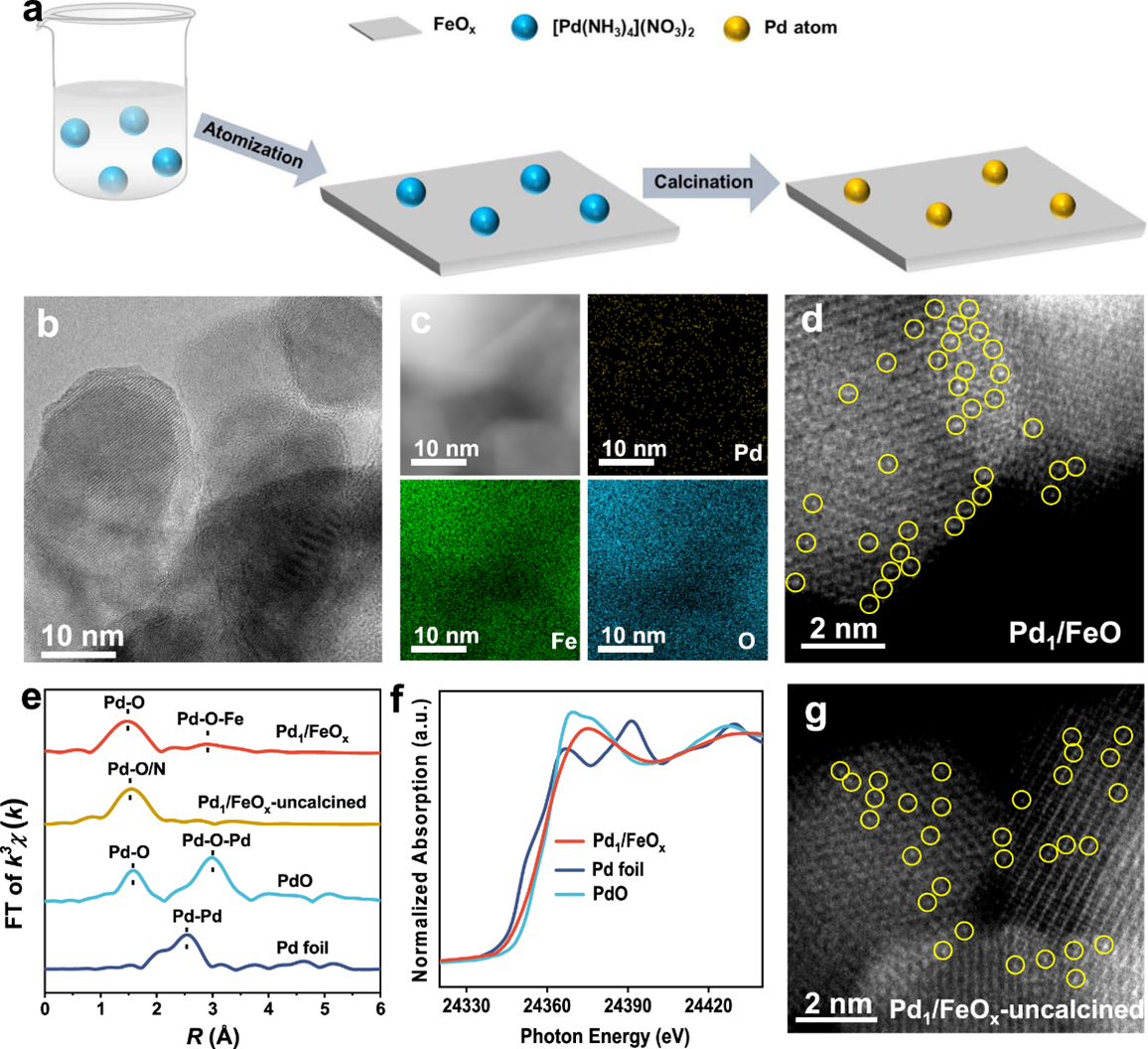(a)前驱体雾化策略制备Pd1/FeOx的方案;