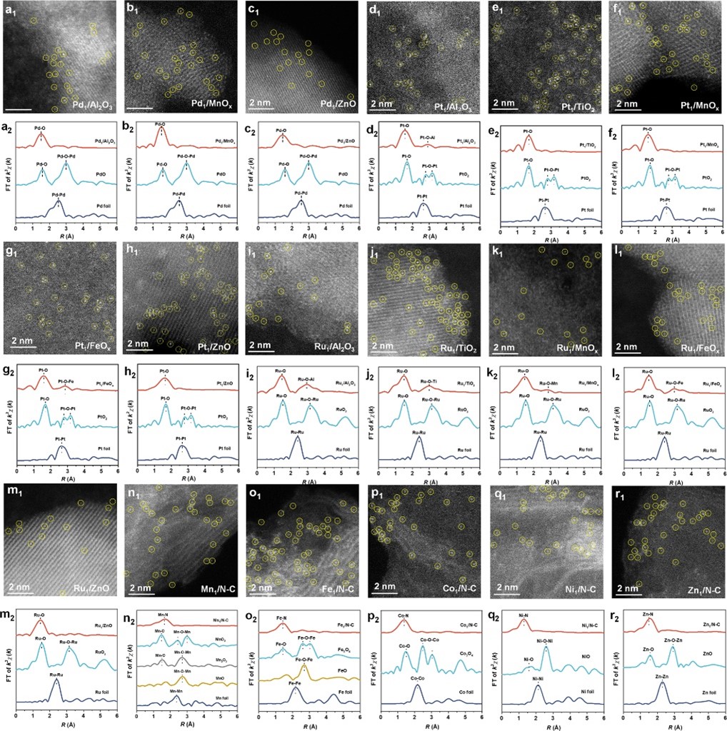 1、前体雾化策略适用于成功合成一系列催化剂,可以为各种不同的金属支撑组合建立SACs库,包括19个具有不同金属位点和载体的SACs和3种SACs衍生物。