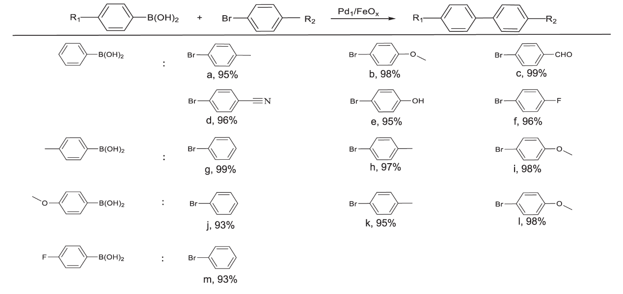 图7 Pd1/FeOx-1催化芳基溴和芳基硼酸的Suzuki–Miyaura交叉偶联 © 2022 The Author(s)