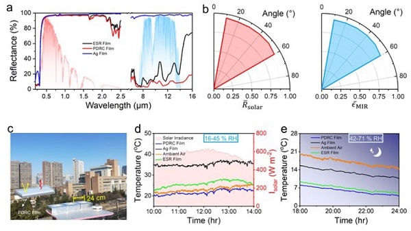 (a)ESR薄膜、PDRC薄膜和银薄膜的耦合高反射性质;