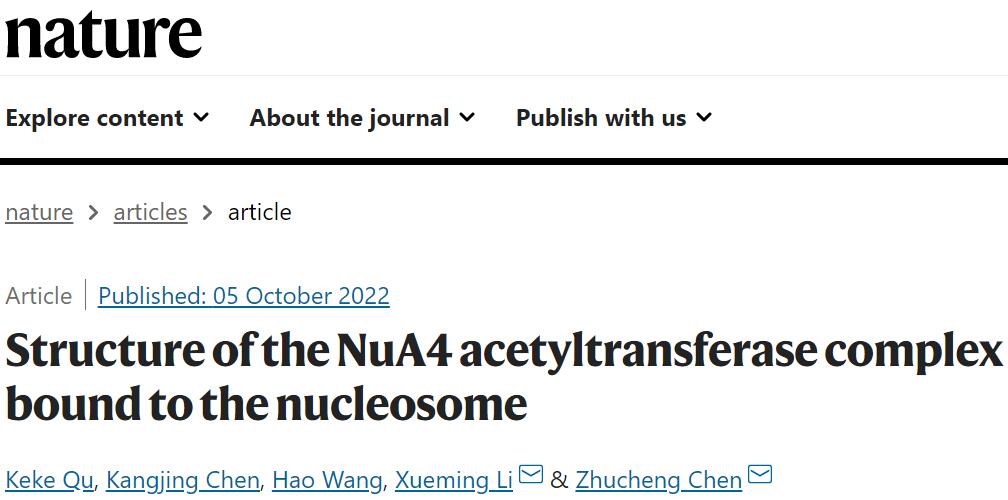 文献链接:Structure of the NuA4 acetyltransferase complex bound to the nucleosome. Nature, 2022, DOI: 10.1038/s41586-022-05303-x.