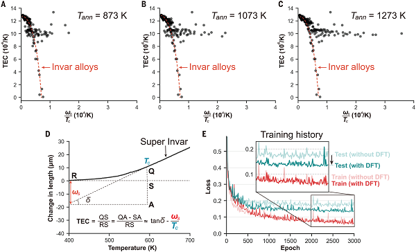 2022年10月6日,德国马普钢铁研究所韦业博士与Dierk Raabe教授(共同通讯)联合提出了一种主动学习策略,以基于非常稀少的数据,在几乎无限的成分空间中加速高熵因瓦合金的设计。该研究方法是一个闭环,将机器学习与密度泛函理论、热力学计算和实验相结合。研究人员首先使用了699种合金的公开数据训练了学习算法,然后让算法生成大量具有低热系数的候选成分,在加工和表征了17种可能的新合金后,研究人员确定了两种热膨胀系数极低的高熵因瓦合金(在300 K下为约为2×10-6 K-1)。该方法是一种快速、自动发现具有最佳热、磁和电性能的高熵合金的合适途径。该论文以题为“Machine learning–enabled high-entropy alloy discovery”发表在知名期刊Science上。此前,机器学习也曾多次登上Nature,Science等顶刊,在材料学、医学等领域大放异彩。