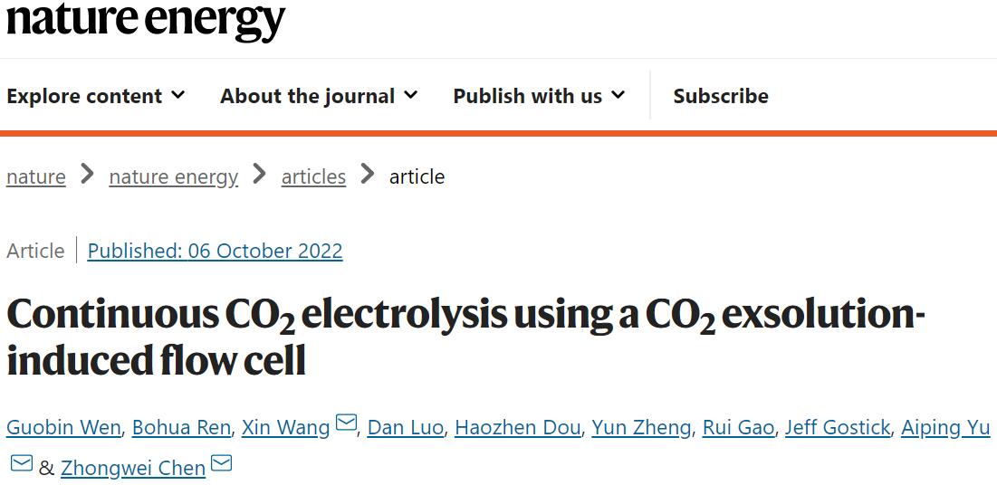 文献链接:Continuous CO2 electrolysis using a CO2 exsolution-induced flow cell. Nature Energy, 2022, DOI: 10.1038/s41560-022-01130-6.
