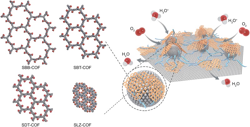 虽然加入疏水性聚四氟乙烯或造孔材料等添加剂可以改善传质,但是在不牺牲CL中质子电导率下优化气体扩散,以实现低Pt负载量的高效燃料电池仍面临着巨大挑战。共价有机骨架(COFs)是一类结晶多孔聚合物,其具有原子预先设计的结构、高比表面积等优点,在传质方面显示出显著的潜力。但是,它们的机械性能以及燃料电池中从负极到正极的H2交叉风险为其实际应用带来了障碍。