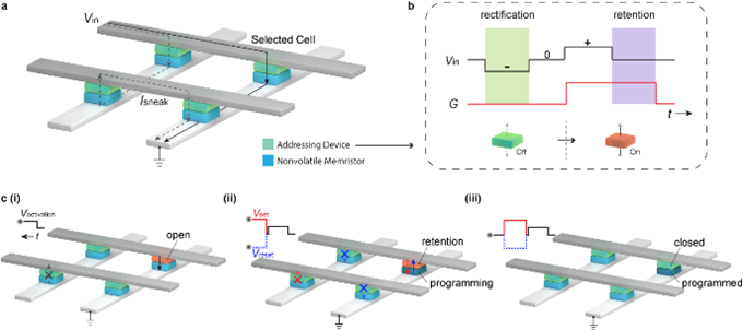 近日,麻省大学(UMass Amherst)的姚军教授团队在Advanced Materials上发表了题为“An Effective Sneak-Path Solution Based on Transient-Relaxation Device”的文章。文章的第一作者为Tianda Fu。该文章提出利用动态编程器件来解决潜行路径的问题,解决了上述的诸多困境。团队采用超低电压蛋白质忆阻器作为动态编程的示例对其战略进行介绍。该工作为使用两端器件解决潜行路径提供了新的思路。