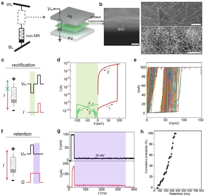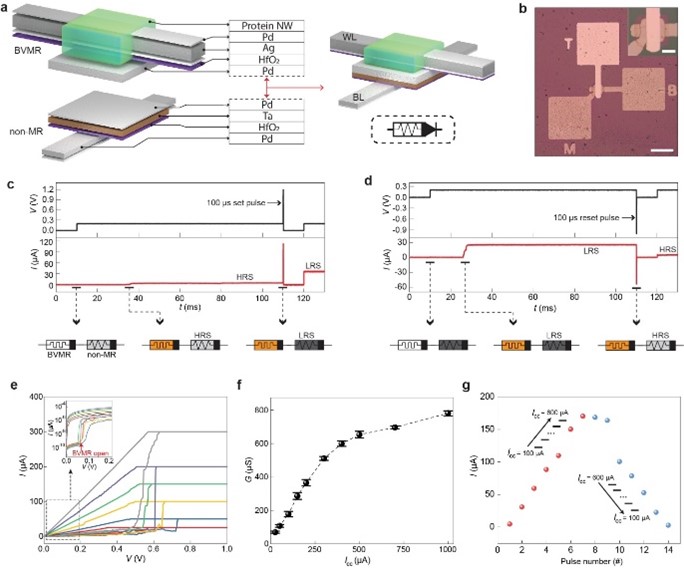 a.使用基于蛋白质纳米线的忆阻器作为动态编程器件