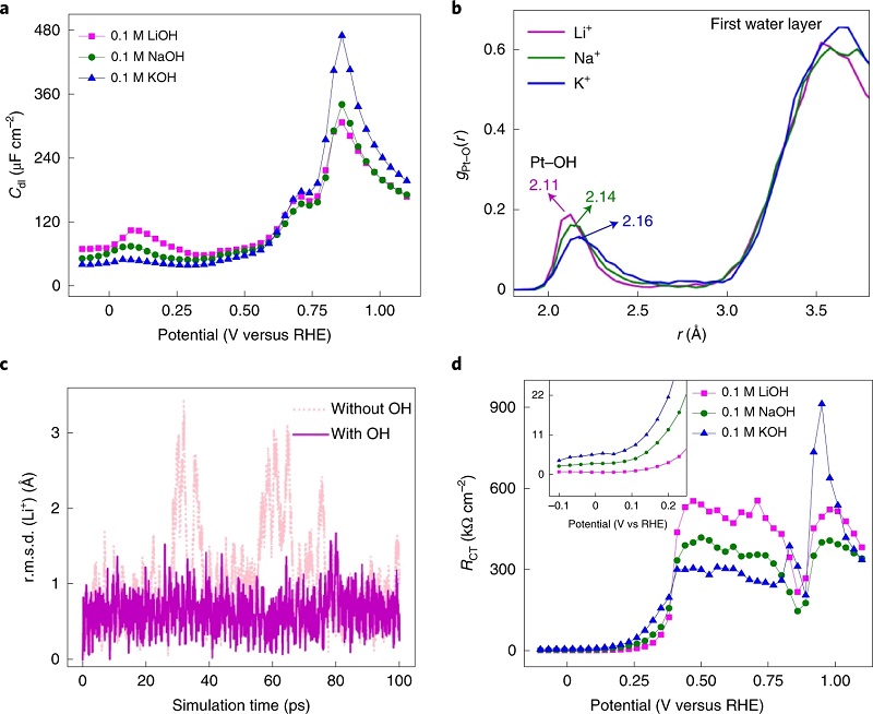 图五、阳离子和OHad的AIMD和微溶剂化模拟©2022 Springer Nature Limited