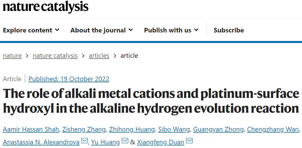 文献链接:The role of alkali metal cations and platinum-surface hydroxyl in the alkaline hydrogen evolution reaction. Nature Catalysis, 2022, DOI: 10.1038/s41929-022-00851-x.