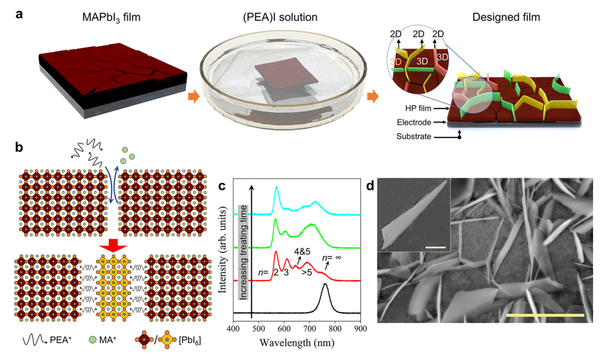 通过甲苯溶剂实现晶界松弛,设计了2D层状钙钛矿横向隔离3D钙钛矿晶粒的-钙钛矿薄膜(GIHP),为研究PCB效应提供了器件支撑。
