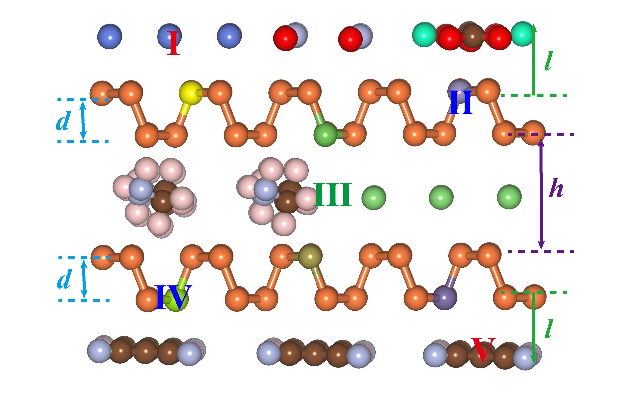 图8. 黑磷掺杂工程示意图。Ⅰ/Ⅴ, Ⅱ/Ⅳ, Ⅲ 分别代表表面掺杂、取代掺杂和插层掺杂区域。