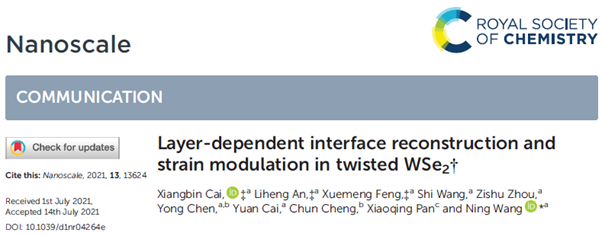 1、层数依赖的转角摩尔界面重构与应力调控-Nanoscale 2021, 13, 13624-13630, https://pubs.rsc.org/en/content/articlelanding/2021/nr/d1nr04264e/