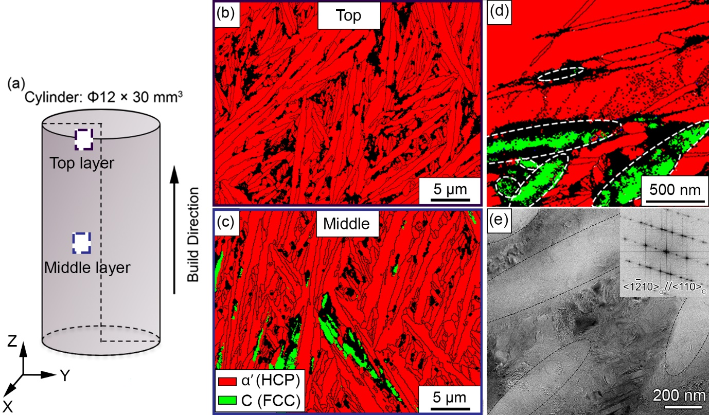 该研究成果以“Introducing C Phase in additively manufactured Ti-6Al-4V: a new oxygen-stabilized face-centred cubic solid solution with improved mechanical properties” 为题刊登在2022年11月18日出版的Materials today上。
