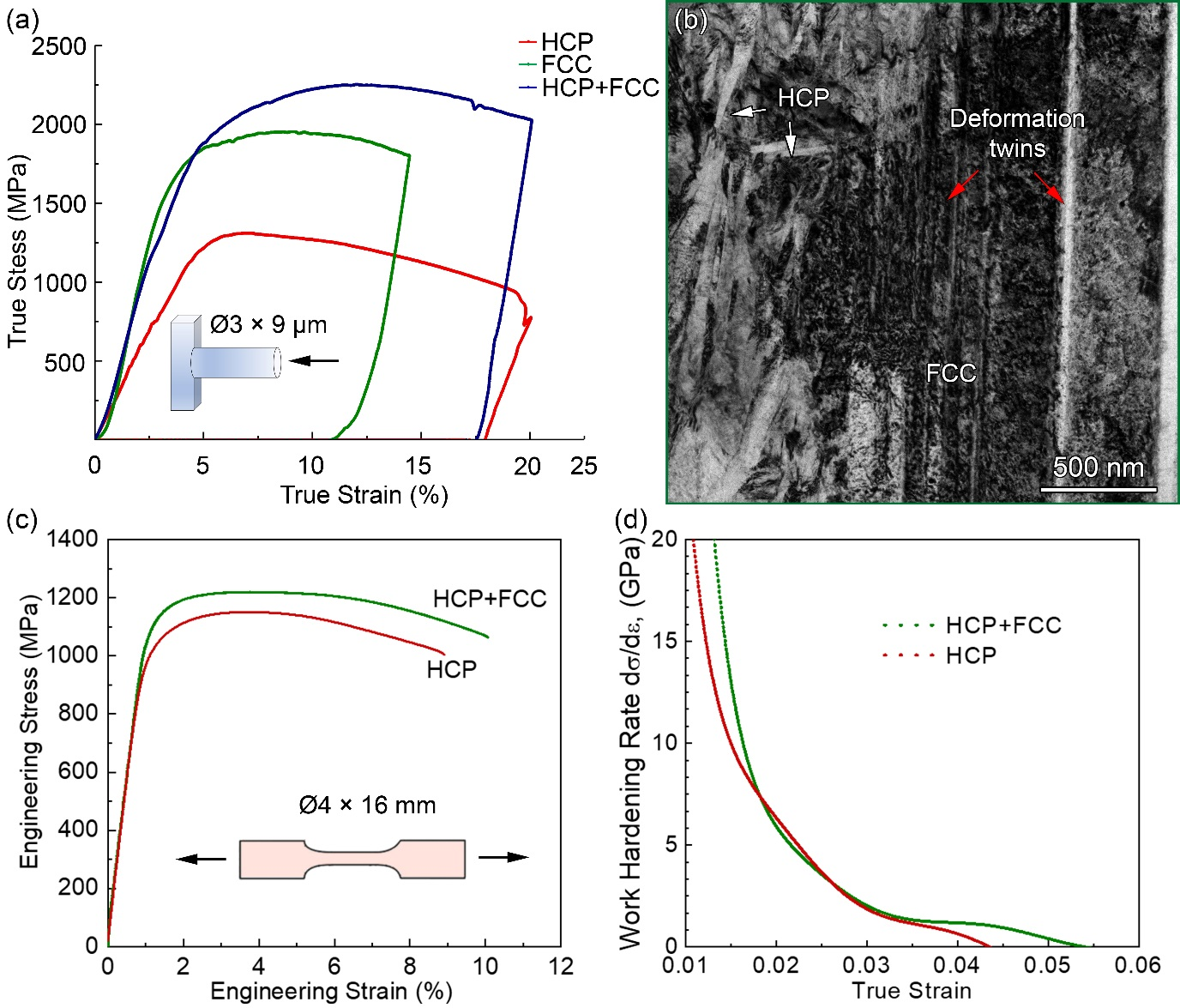 钛及其合金——特别是Ti-6Al-4V——有着高强度和优异的耐腐蚀性,因此它们广泛应用于从航空航天到生物医学植入等关键应用领域。其塑性变形能力是有限的,在很大程度上由低温α相的密排六方(HCP)结构所决定。关于Ti的面心立方 (FCC) 相是否可以在室温下稳定存在的争议可以追溯到几十年前。此前研究者们普遍认为,Ti的FCC形式要么是金属间化合物,如氢化物,要么是当钛合金受到电子束或电离辐射时,所出现的高度局域化和缺陷稳定的亚稳态相。