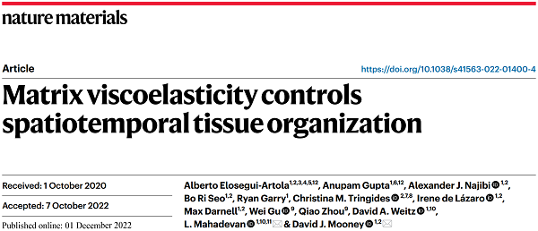 文献链接:Matrix viscoelasticity controls spatiotemporal tissue organization (Nat. Mater. 2022, DOI: 10.1038/s41563-022-01400-4)