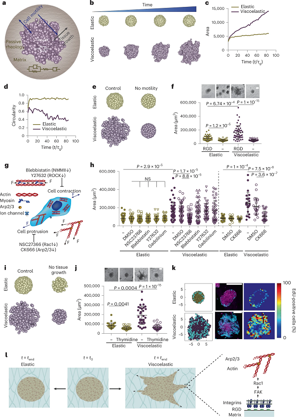 (a)组织在被动粘弹性基质中生长的理论物理模型。