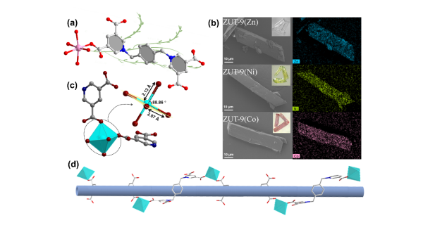 开发新型稳定的金属有机配位聚合物摩擦电材料对微纳电源在自供电系统中的应用具有重要意义。近日,中原工学院邵志超博士和米立伟教授团队利用离子配体制备了具有高自旋电子的螺旋金属有机链,并通过调整金属类型增加金属中心的旋子数量,可以有效地改善摩擦电学性能。研究成果以“A high-spintronic helix metal-organic chain as a high-output triboelectric nanogenerator material for self-powered anticorrosion”为题在《Chemical Engineering Journal》上在线发表。