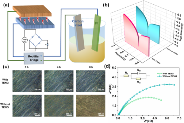 图4 ZUT-9制备的摩擦纳米发电机用于自供电防腐。