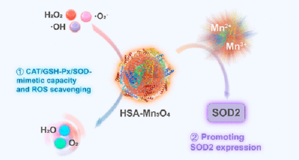 暨南大学附属第一医院徐安定教授和陈填烽教授联合制备了一种仿生型Mn3O4纳米酶(HSA-Mn3O4),并将其用于抑制缺血卒中再灌注诱导的神经系统损伤。该纳米系统具有降低炎症水平、延长的体内循环时间和强效清除活性氧等性能。研究发现,HSA-Mn3O4能有效抑制缺氧缺糖损伤所诱导的细胞凋亡和内质网应激,对脑组织缺血卒中和再灌注损伤具有很好的神经保护能力。此外,HSA-Mn3O4能有效释放Mn离子,促进SOD2活性的提高。实验结果表明,HSA-Mn3O4可在体内通过抑制细胞凋亡和内质网应激以抑制脑组织损伤。综上所述,这一研究不仅设计了一种新型仿生纳米药物,而且也充分揭示了其对于缺血性脑卒中和再灌注损伤的神经保护作用机制。相关研究成果以“Bioactive Nanoenzyme Reverses Oxidative Damage and Endoplasmic Reticulum Stress in Neurons under Ischemic Stroke”为题发表于ACS Nano上。