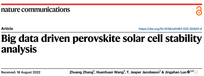 相关研究成果以“Big data driven perovskite solar cell stability analysis”为题发表在Nature Communications上。