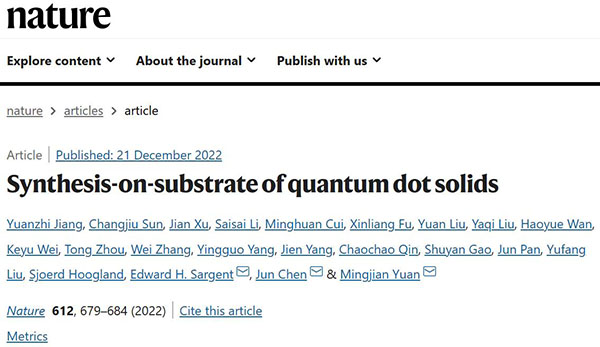 相关研究成果以“Synthesis-on-substrate of quantum dot solids”为题发表在Nature上。