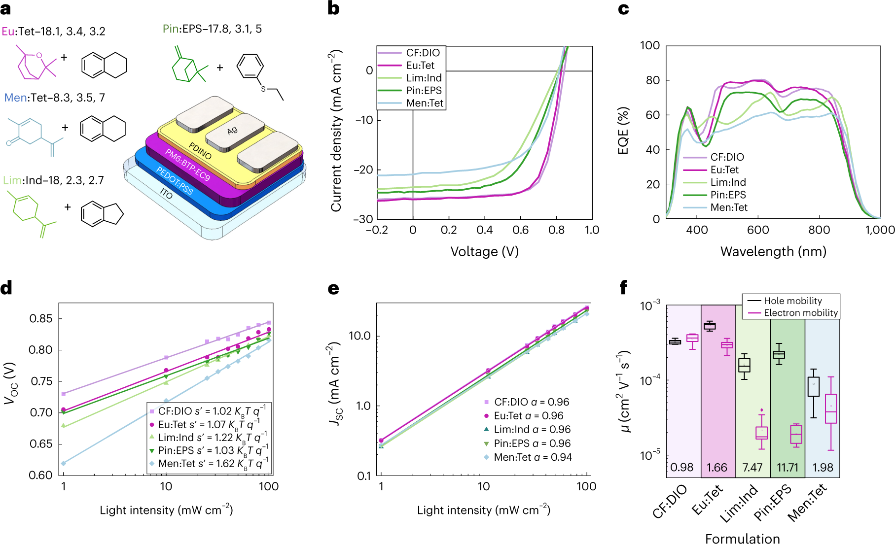 图3. 萜烯配方的光伏性能。© 2022 Springer Nature