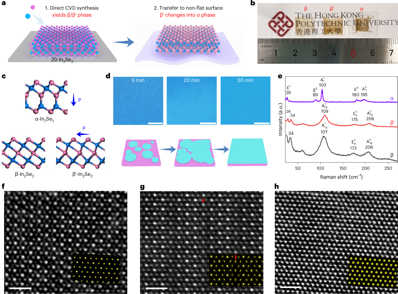 图1. 大面积二维In2Se3薄膜的相控合成。© 2022 Nat. Nanotechnol.