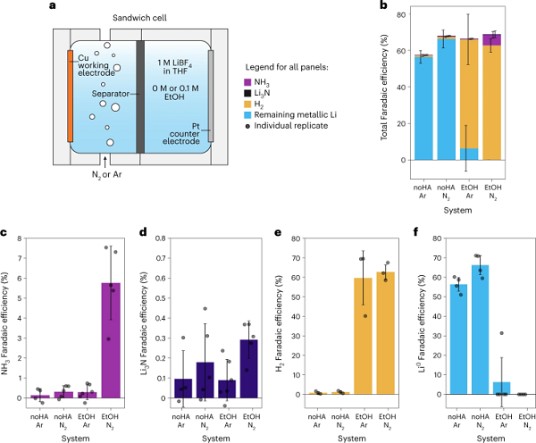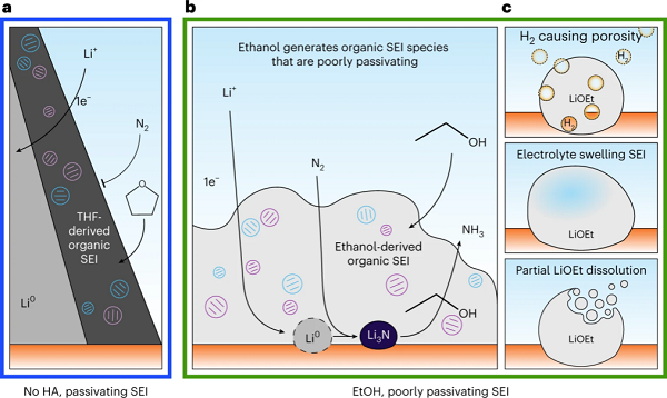 使用冷冻透射电子显微镜作为多尺度方法的一部分来探索锂反应性和SEI,发现质子供体(例如乙醇)控制着锂对固氮的反应性。