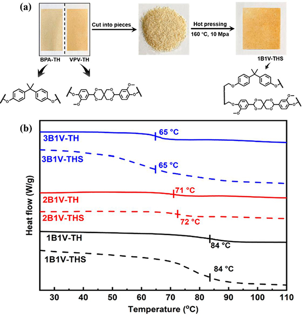 (b)含不同BPATH/VPV-TH含量的熔融DCNs的DSC曲线。
