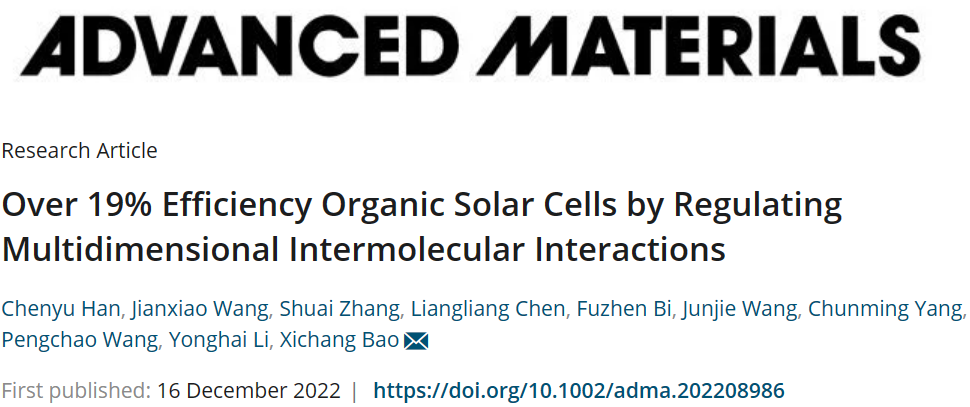 包西昌:本文中我们尝试研究了多维分子间的相互作用机制,但有机光伏活性层中的分子间相互作用种类繁多、机制复杂,阐明这些相互作用的影响,并合理调控利用这些作用可能会多方位推动有机太阳能电池的发展,包括材料设计、溶液态中溶剂-给受体材料-预聚集行为、共混薄膜的柔性、薄膜亚稳态中形貌演化、电池性能与稳定性等问题。下一步我们团队不仅会继续通过材料结构的创新研究,更深入的阐释分子间的相互作用机制,提升器件的光电转换效率和器件柔韧稳定性,还会开展有机光伏器件的工作机制研究,希望能对有机太阳能电池有更深入的认识,并发展有利的器件工艺或结构,与国内外同行一起推动有机光伏的早日商业化应用。