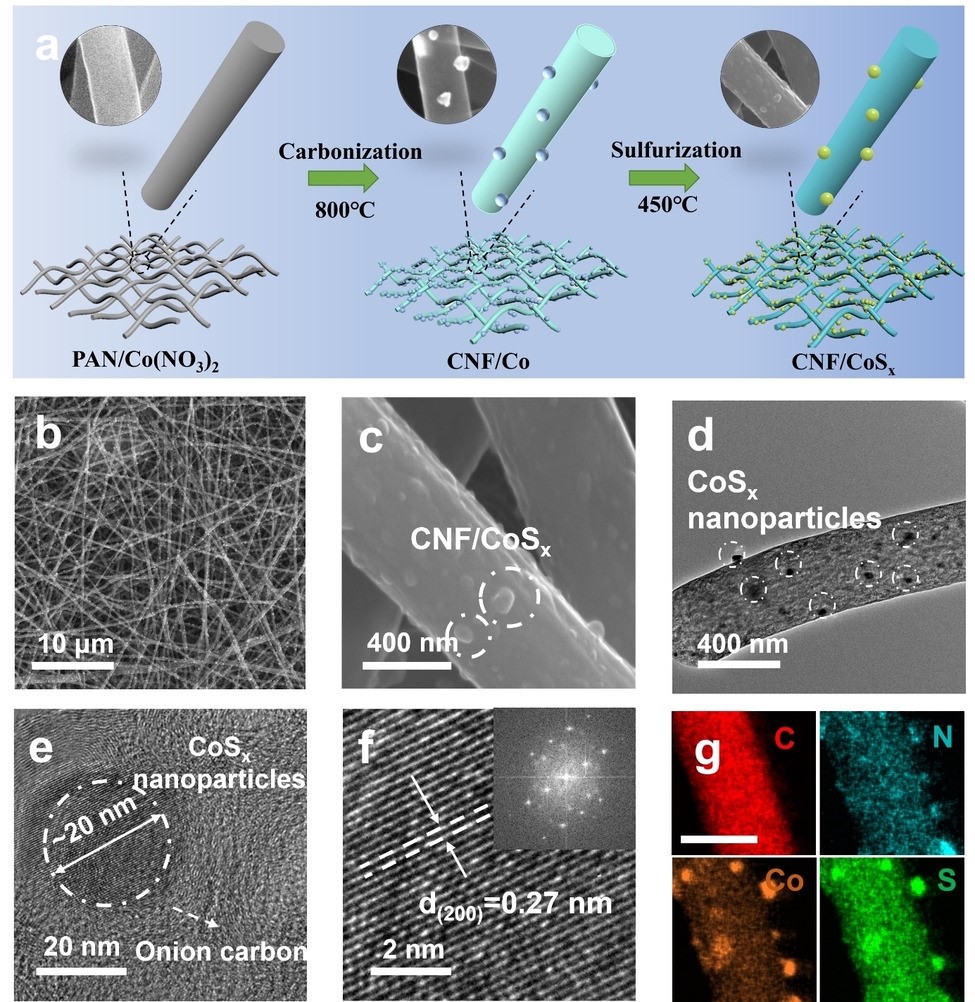 图1. CNF@CoSx电极的表征。© 2022 Angew.