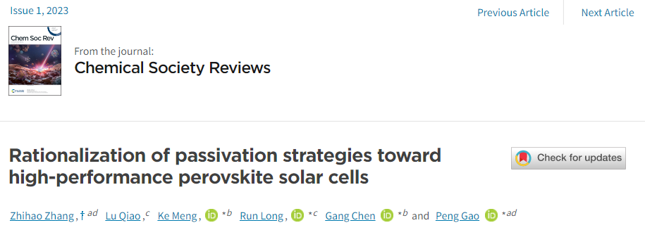 相关工作以“Rationalization of Passivation Strategies toward High-Performance Perovskite Solar Cells”为题,发表在国际顶级期刊Chemical Society Reviews。第一作者为中科院福建物构所硕士生张志皓(已毕业)。