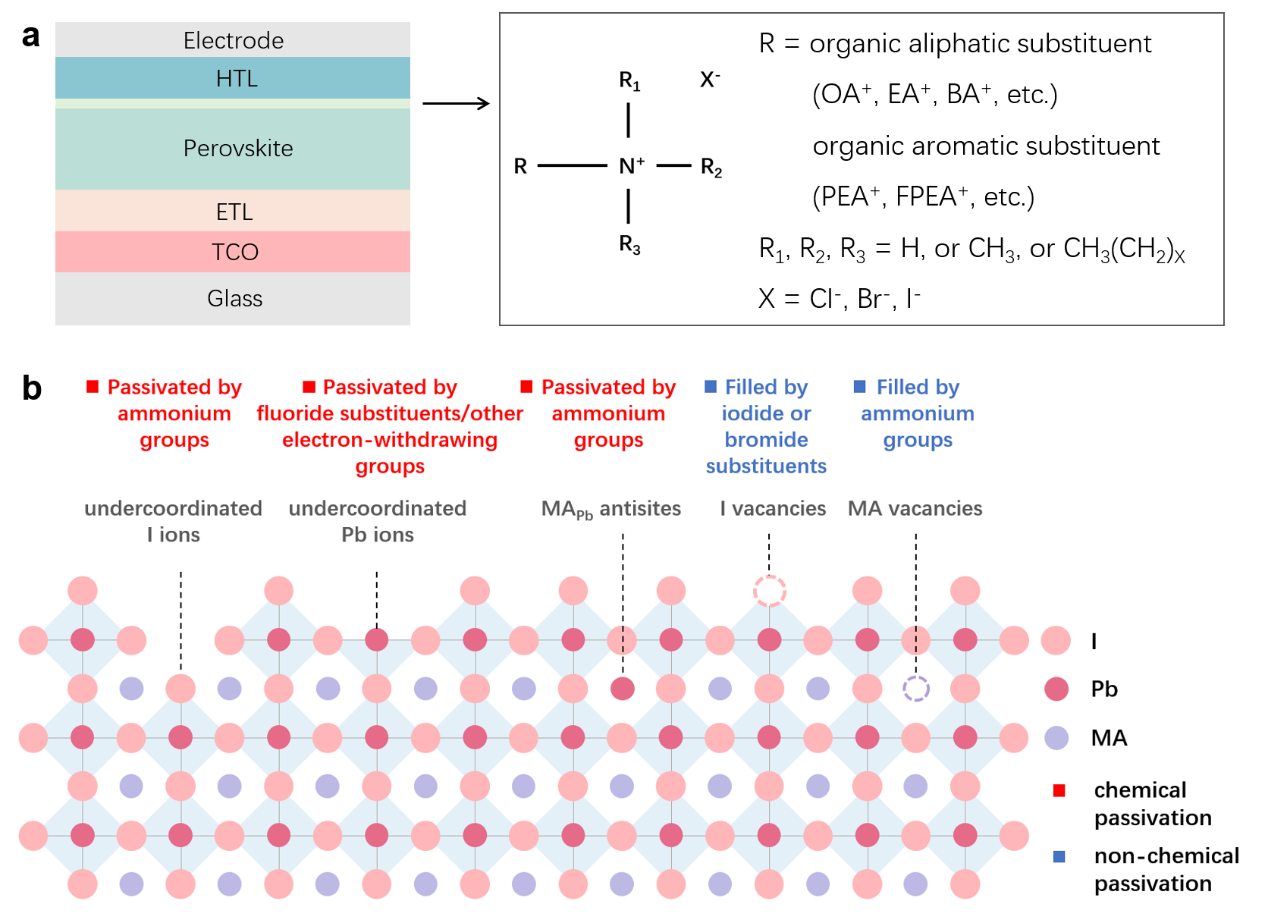 - 1. 研究团队对钙钛矿电池现有的钝化策略进行了分类,全面地介绍了化学钝化、物理钝化、能量钝化、和场效应钝化的作用机制与实现方法,以及最近在该领域中取得的重要研究进展;