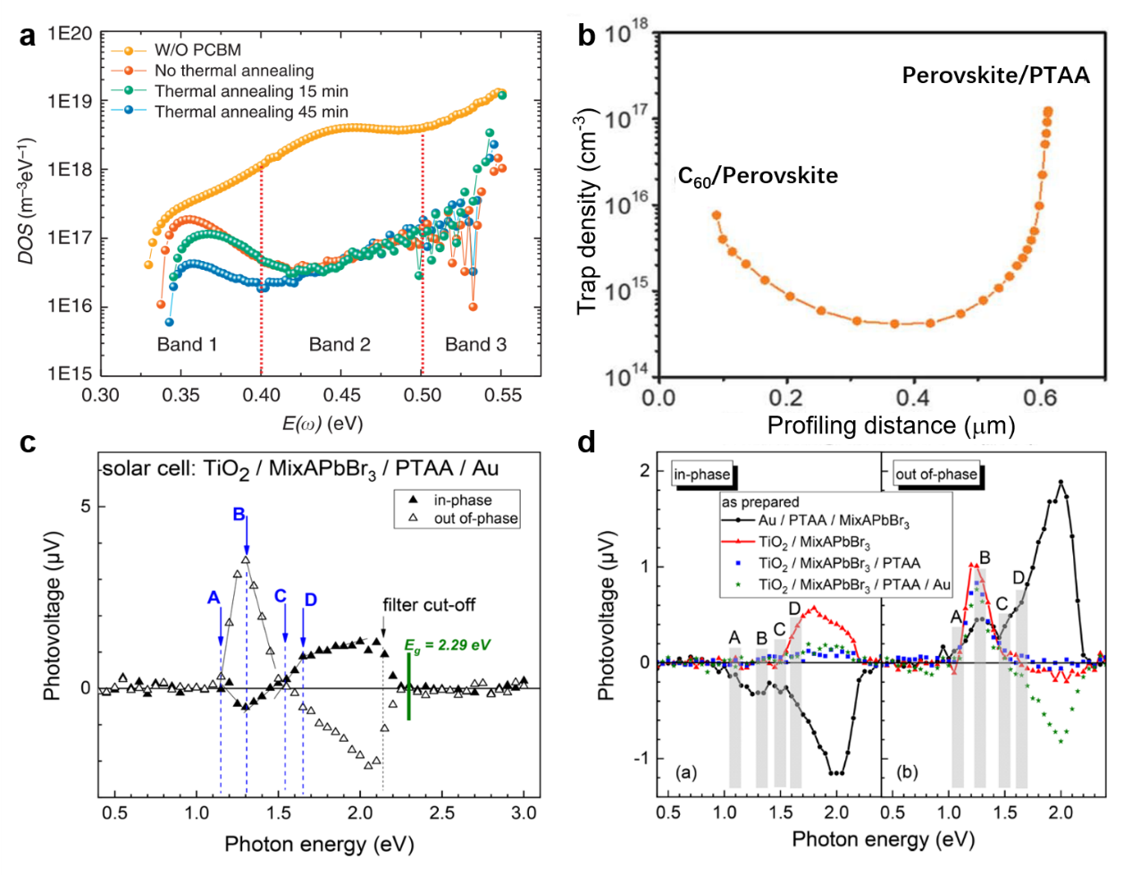 图6. 表征技术中的热导纳光谱、激励电平电容压型、表面光电压谱。