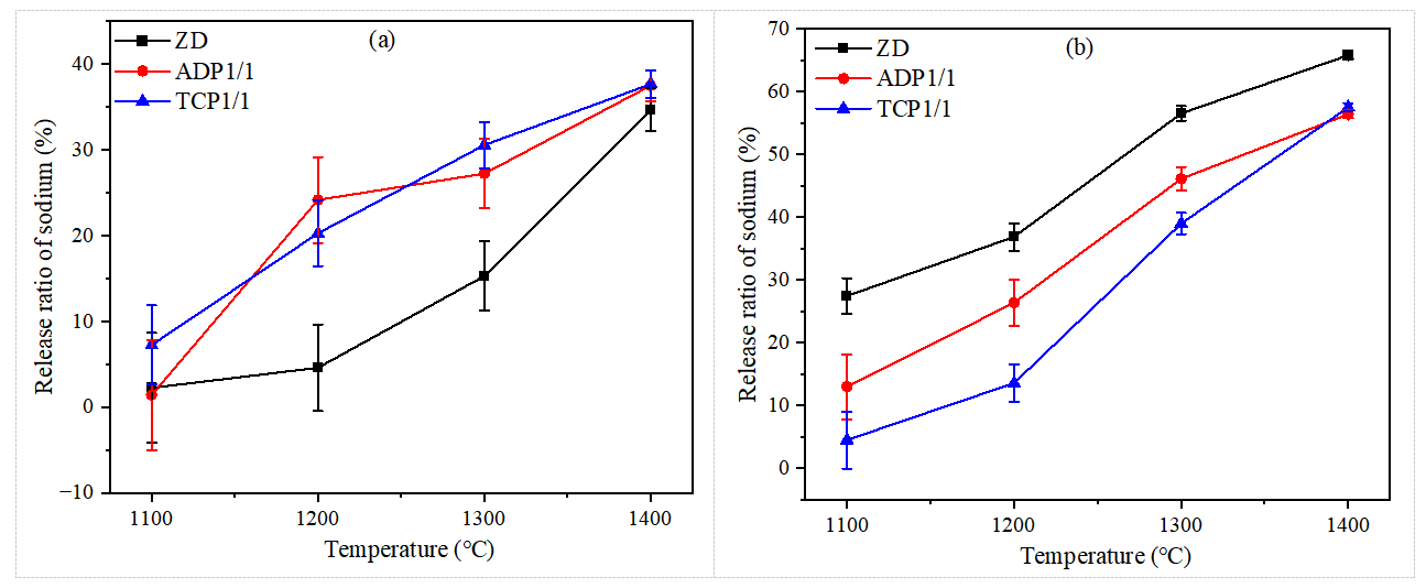 图2 气化过程中钠的释放率。(a)气化反应初始阶段(b)气化反应最终阶段