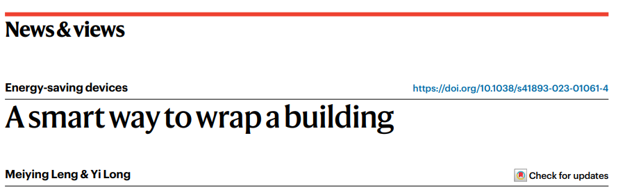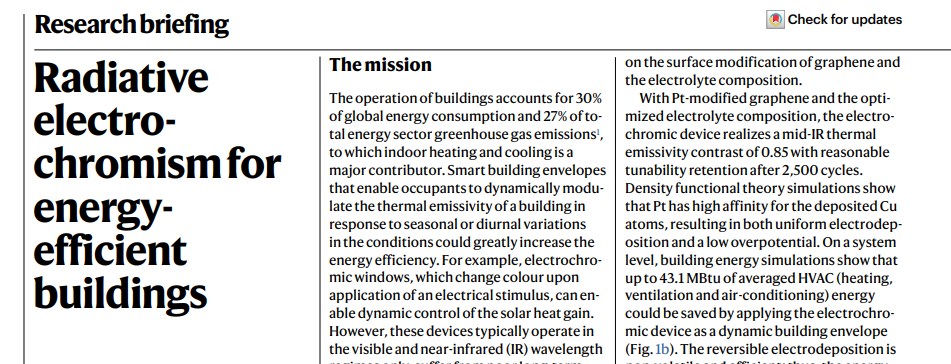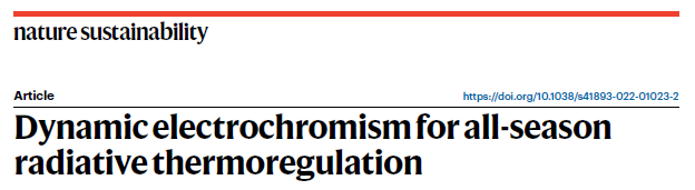 作者也同时受邀在Nature sustainability撰写该研究的评论型文章:Radiative electrochromism for energy–efficient buildings