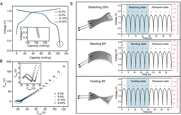 图三、可拉伸LIBs在不变形时的性能 © 2023 AAAS