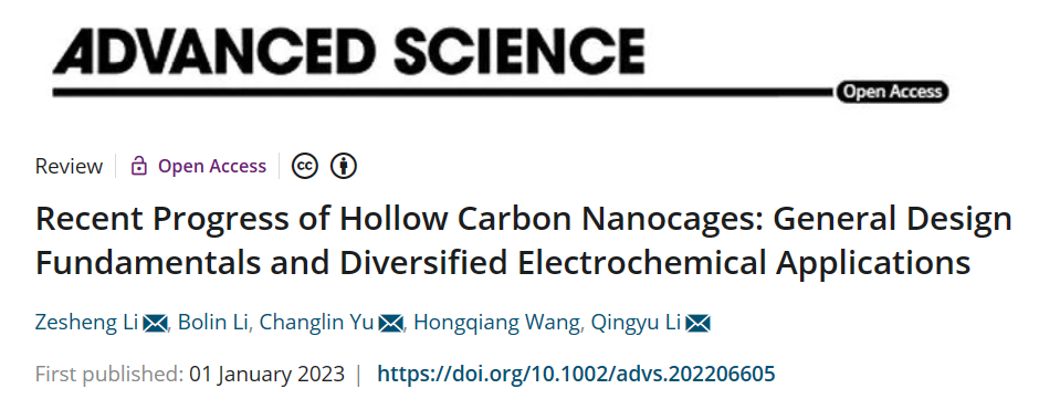 Li, Z., Li, B., Yu, C., Wang, H., & Li, Q. (2023). Recent Progress of Hollow Carbon Nanocages: General Design Fundamentals and Diversified Electrochemical Applications. Advanced Science, 2206605.