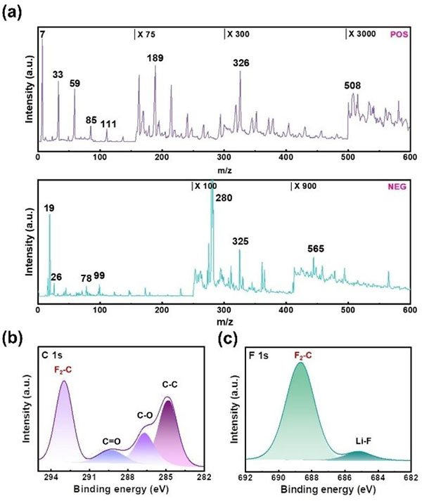 (b,c)Poly-MFA和LEDC,其中C-F键强于C-H键,Poly-MFA的分解产物氟化锂更稳定;